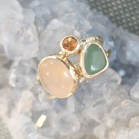 "Ik ben heel blij met mijn ring! Het was een stormachtig jaar maar de ring geeft vertrouwen en rust...en geborgenheid. en past echt bij mij. De kleuren en de vormen, de stenen en het materiaal...we hebben het uitgebreid samen voorbesproken.