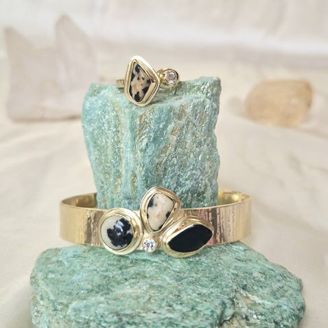 Beide heel waardevol vanwege de verbinding met mijn dierbaren. Door een toeval kwam ik met Adinda in contact. Zij heeft samen met mij gekeken naar de mogelijkheden om van iets ouds iets nieuws te maken. Uit haar collectie edelstenen heb ik een drietal stenen gekozen die ik graag in de sieraden verwerkt wilde hebben. Tijdens het ambachtelijke proces van ‘oud naar nieuw’ heeft Adinda mij er nauw bij betrokken om tot een zo’n mooi mogelijk resultaat te komen. De nieuwe sieraden, 2 ringen, zijn dan ook prachtig geworden en ik draag ze met plezier! De laatste steen ligt nog te wachten tot het in een armband verwerkt gaat worden. Weer een project van oud naar nieuw. Ook hier heb ik weer alle vertrouwen in Adinda. Een vakvrouw met oog voor detail!"