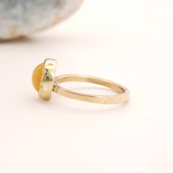 De steen op de ring is een Gele Jade, Rond 8 mm.