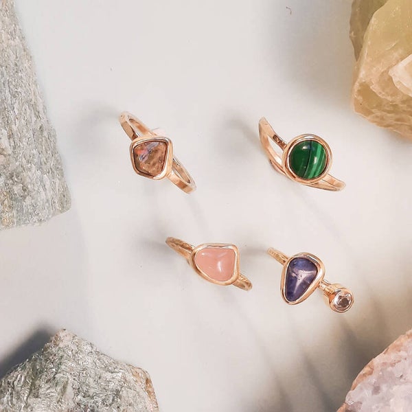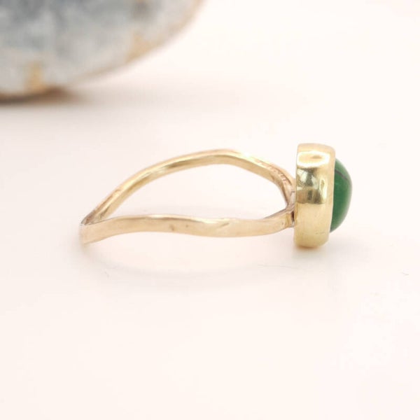 De steen op de ring is een Malachiet. Rond 8 mm.