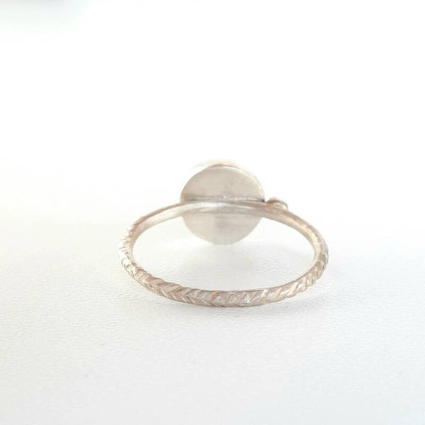 Deze bescheiden en toch krachtige ring is gemaakt van zilver en edelsteen