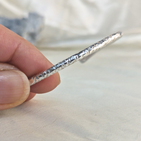 Deze solide armband is gemaakt van sterling zilver van band rond 3 mm . Met een Messy-slag er in geslagen.